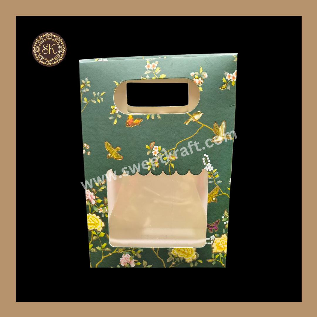 1 Flower Print Window Jar Bag With Handle | Jar Bag | Chocolate Bag | Cookie Bag | Gifting Bag | Green Colour:-