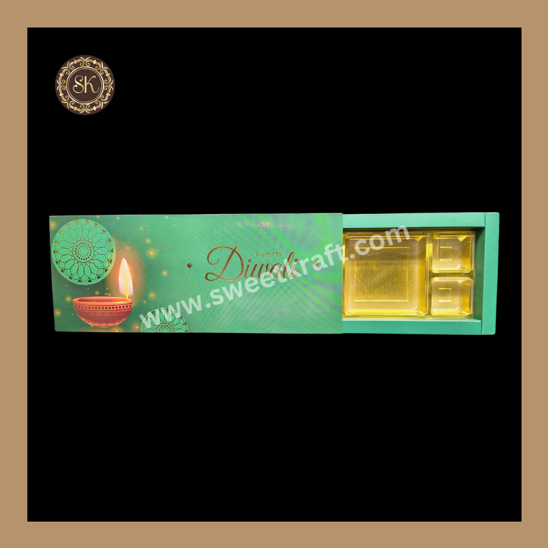 12 DC Diwali Box | Mithai Box | Happy Diwali | Golden Cavity Box | Chocolate Box | Gift Box | Green Colour - (With Cavity & Lid Cover)