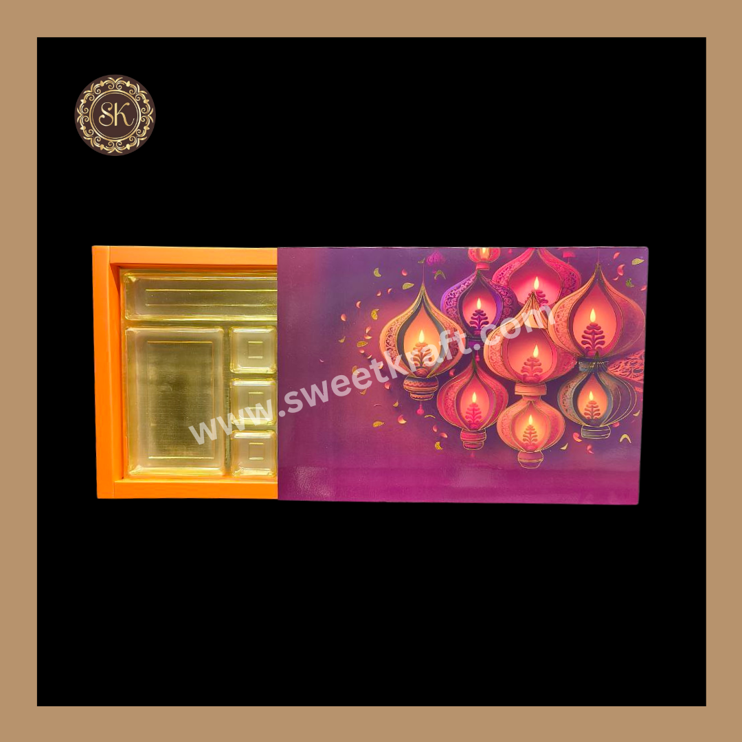 24 Pataka Diwali Box | Mithai Box | Happy Diwali | Golden Cavity Box | Chocolate Box | Gift Box | Orange Colour - (With Cavity Lid Cover)